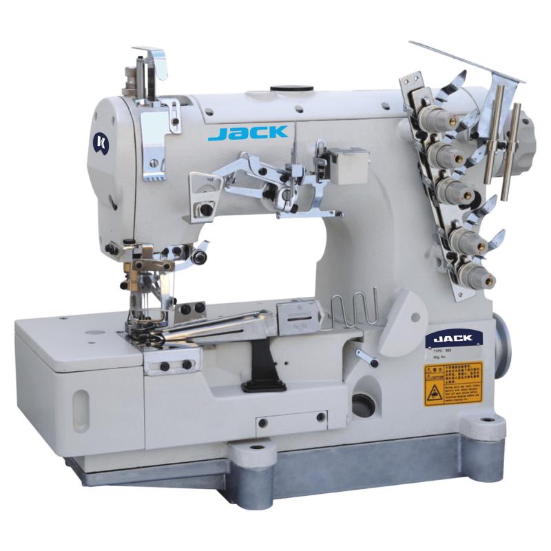 Máquina de costura industrial 2 e 3 agulhas ponto corrente, tipo galoneira base plana, de tipo aberta e fechada, com lubrificação automática, com trancador superior e inferior. Esta maquina pode ser apresentada também com corte de linhas automático, levantador de calcador, posicionador de agulhas, sistema de caca fio automático e motor servo Direct Drive, nas versões BT e com catraca, calcadores com guias moveis.